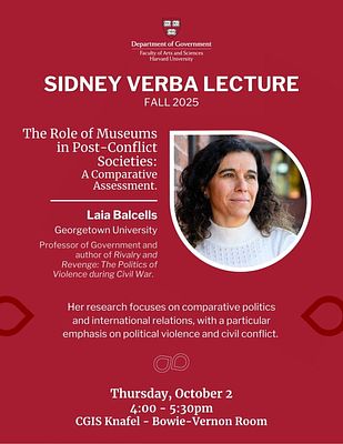 I am honored to be giving the Sidney Verba lecture at the Department of Government at Harvard University next week.